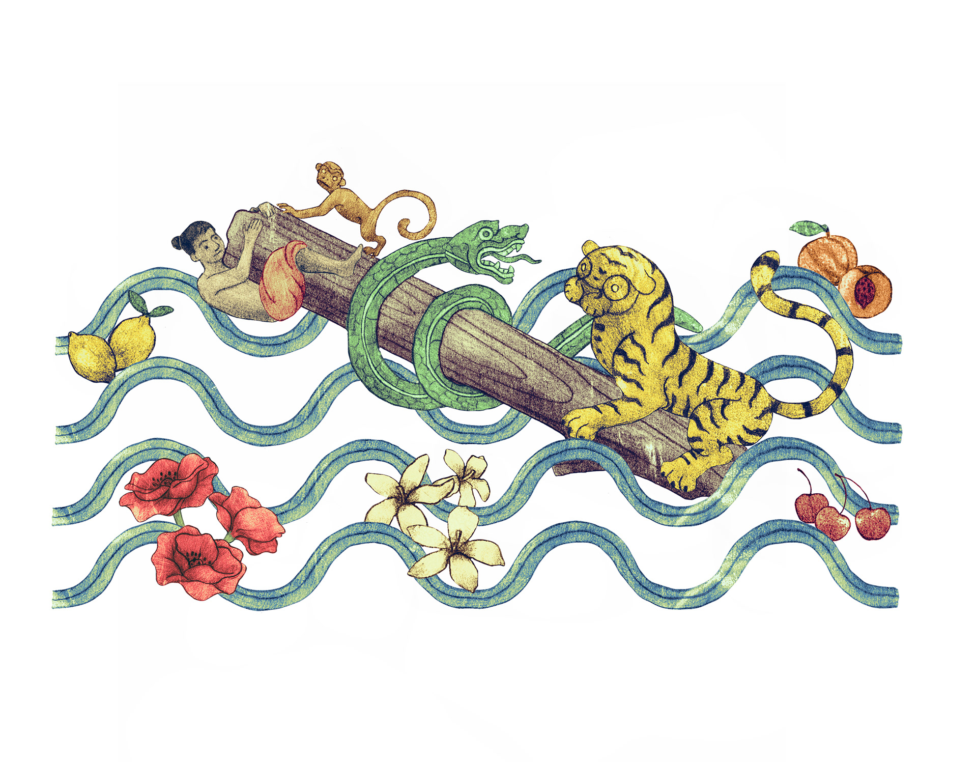 Scrolling animations depicting Myanmar myths and legends for SAWBWA website.